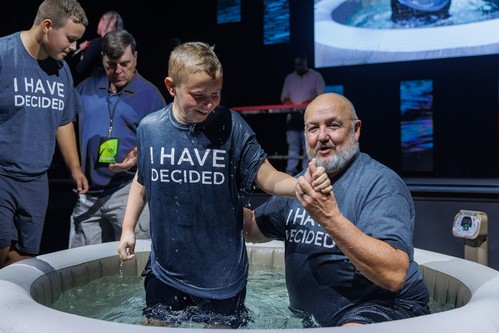 Followers of Jesus are invited to follow in His footsteps and be water baptized. This symbolizes us publicly declaring we are leaving behind our sinful tendencies to be cleansed by Jesus' forgiveness from the cross and live a new, resurrected life with Jesus.
